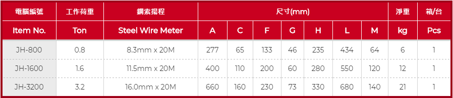 機殼採用高強度優質鋁合金壓鑄而成,配套使用的鋼絲繩具有特別高的破斷拉力和耐磨性