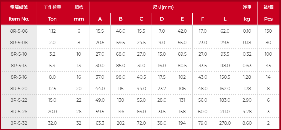 - 下一條:臺灣帕薩克80級寬嘴強力錘重環(眼/鉤)