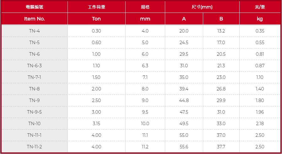 臺(tái)灣帕薩克內(nèi)用鏈(吊車鏈條)TN