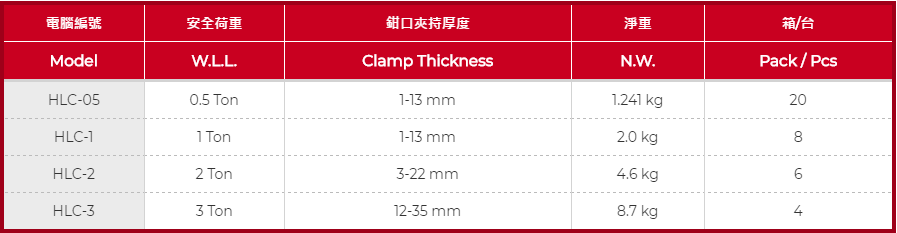 臺灣帕薩克HLC型鋼板橫吊夾具