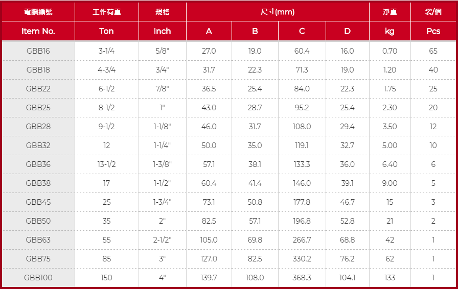 產品特性:適用於直、側吊裝起側吊、多負荷的吊裝系統,防止脫落用螺栓,螺母,開口銷加強安全保護載荷範圍:3-1/4Ton-150Ton本體材質:中碳鋼、鋅材質:碳鋼外觀:電鍍鋅安全係數:4:1
